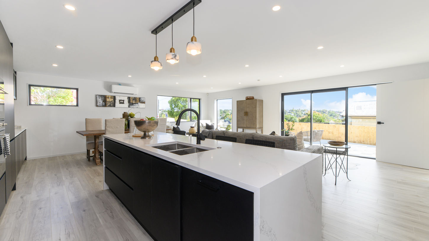 Located in the vibrant heart of Torbay, 2/9 Finchley Road is a standout new-build townhouse that blends modern architectural materials with bold design choices and exceptional landscaping. The exterior is a striking composition of vertical cedar cladding in sleek black, vertical weatherboard, and blockwork, delivering a visually rich and structurally balanced façade.